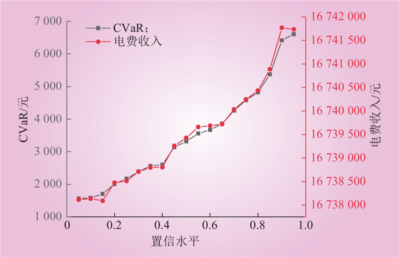 | 方差 | 峰时段/(元·(MW·h)–1) | 平时段/(元·(MW·h)–1) | 谷时段/(元·(MW·h)–1) | 平均电价/(元·(MW·h)–1) | CVaR/元 | |||||