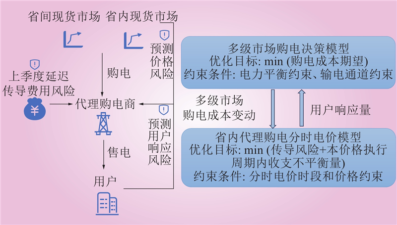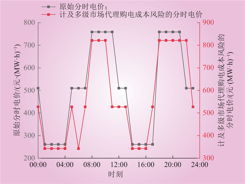 针对当前省内分时电价机制忽略省级以上电力市场交易成本影响且忽视代理购电商购电成本传导风险的问题,提出一种考虑多级市场代理购电成本传导风险的分时电价定价模型。首先,基于购电成本最小化目标,设计多级市场购电决策模型;然后,采用概率场景描述现货市场价格预测偏差和用户响应预测偏差,并以条件风险价值(conditional value at risk,CVaR)作为传导风险评估指标,建立最大化传导上级市场购电成本变动和最小化代理购电商传导风险为目标的分时电价模型;最后,采用k-means和粒子群算法进行求解。算例分析结果表明,所提出的分时电价模型能更准确传导多级市场的成本与风险,向用户释放多级电力市场的综合价格信号,并能够为代理购电商提供多级市场交易情境下的风险分析。