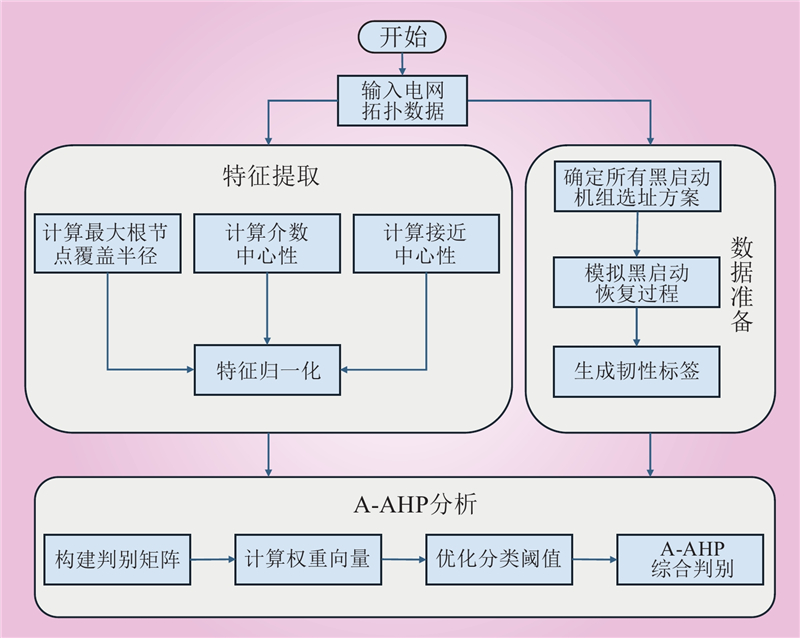 关键词: 电网韧性, 拓扑结构, 黑启动, 最大根节点覆盖半径, 自适应层次分析法